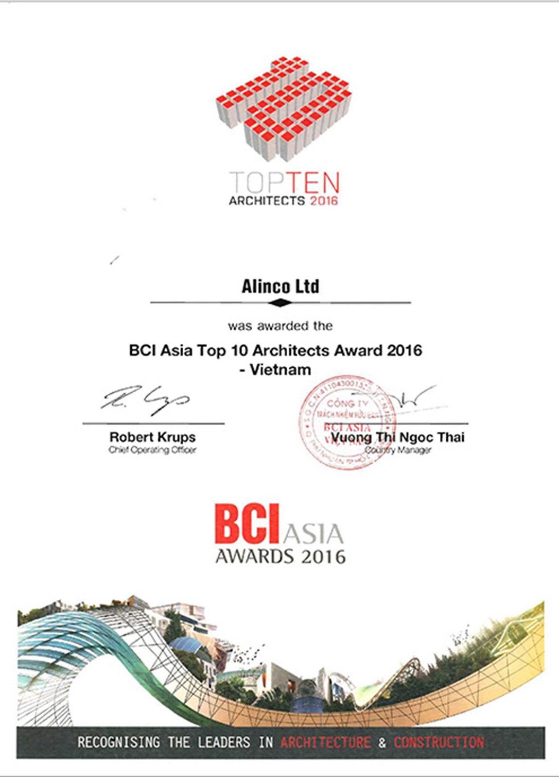 Top 10 Architectural firms in Vietnam by BCI Asia Awards.