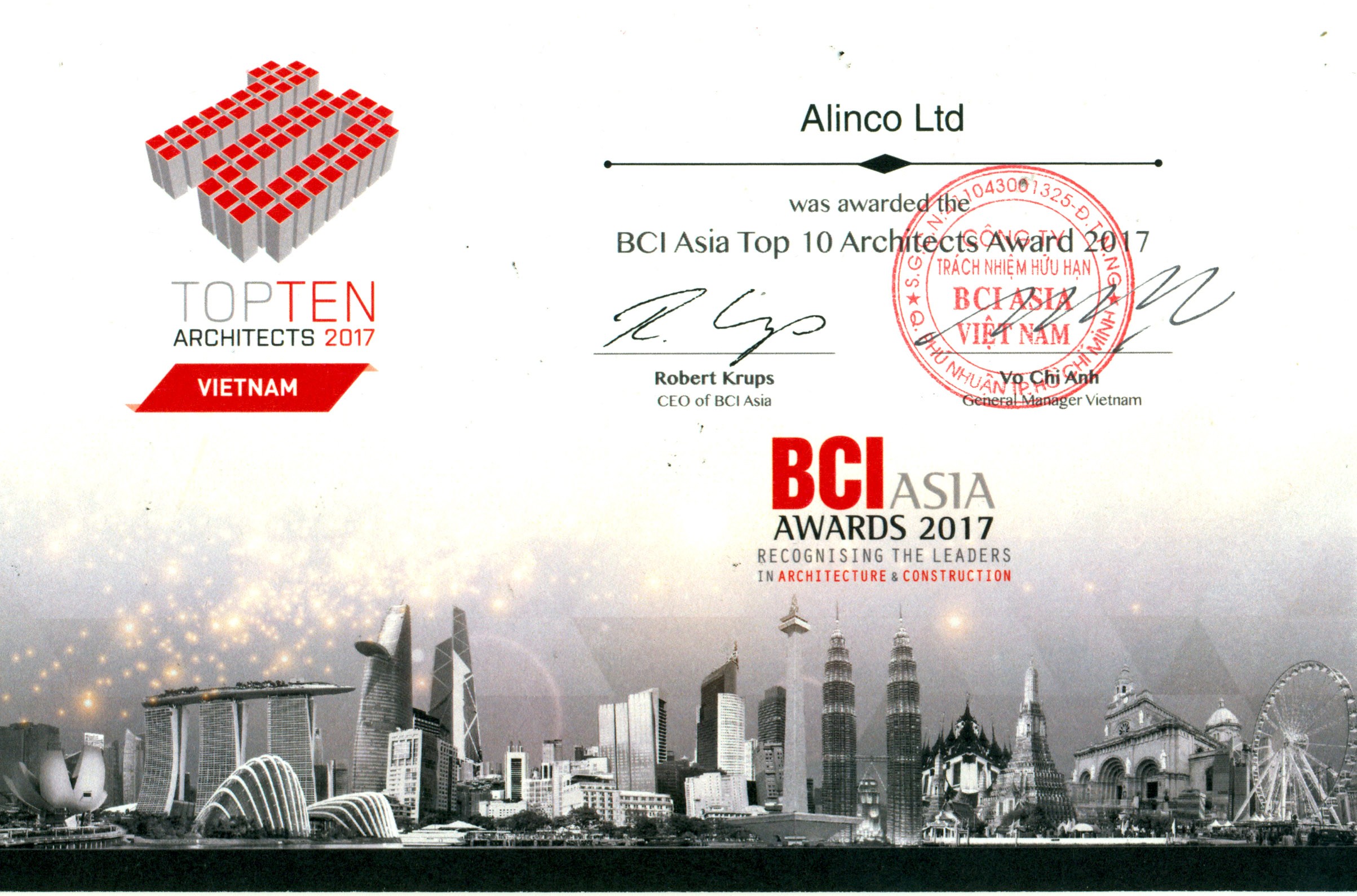 Top 10 Architectural firms in Vietnam by BCI Asia Awards.
