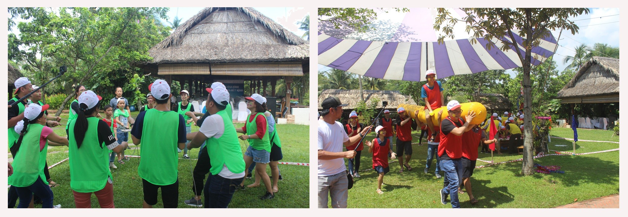Nắng bắt đầu lên và các bé đã thắm mệt, nhưng các thành viên lớn tuổi trong đội vẫn rất sung sức sẳn sàng lao nhanh vào hai trò chơi có độ thử thách cao hơn là “Đồng lòng tâng bóng” và “Cuộc đua kỳ thú”.Ở game “Đồng long tâng bóng” các thành viên sẽ phối hợp sử dụng dụng cụ của BTC cung cấp và tâng tối thiểu là 10 lần. Không phải nói mức độ khó tăng hơn nhiều so với 2 game trước. Nhưng sự hào hứng là thứ thường trực trên mặt mỗi người.